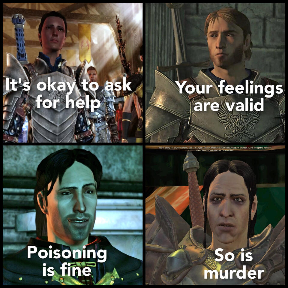 An alternate FusionVerse where everything goes wrong after the Landsmeet: Jowan dies in the Joining (and thus cannot do the ritual with Morrigan). Alistair abandoned the Wardens, Heulwen and Riordan died during the Final Battle, and Loghain slew the Archdemon. Daren would go on to serve as the Ferelden Warden-Commander for almost a decade, until investigation into unreported Warden movements led him to the conclave ... and Corypheus.During DAO: